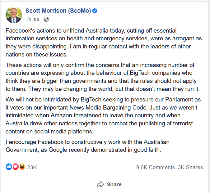 I think big Tech is having a big tantrum [message #50] Thu, 18 February 2021 15:32 Go to next message
